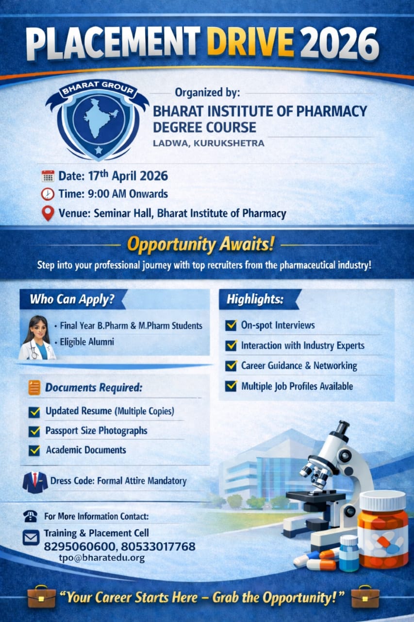 We are excited to announce that Bharat Group of Institutions is organizing a Mega Job Expo 2024 on June 8th, starting at 10 AM onwards. This event will be a fantastic opportunity for job seekers to connect with top employers…